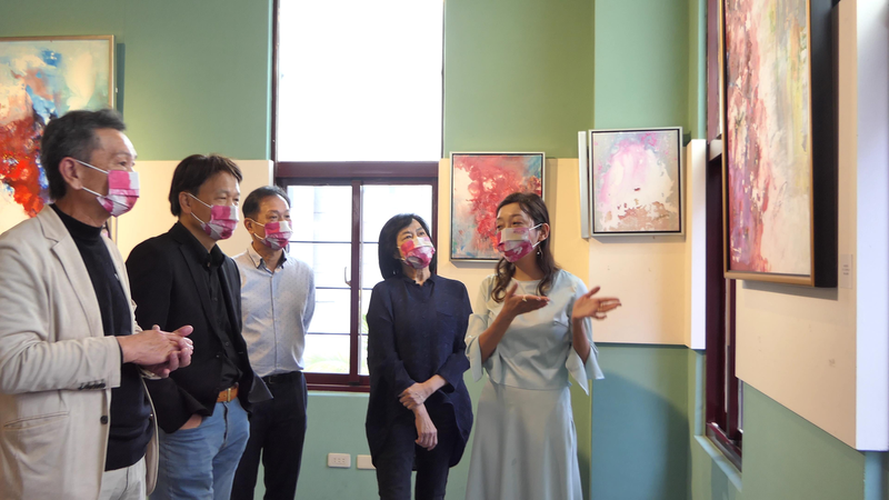 朱先仙自4月1日至30日,首度在「全安堂」台灣太陽餅博物館2樓展廳舉行「柯夢波丹」繪畫個展,今天舉辦開幕活動,策展人戴誼、台中市文化局副局長曾能汀、台灣太陽餅博物館執行長陳瑛宗等人皆出席。